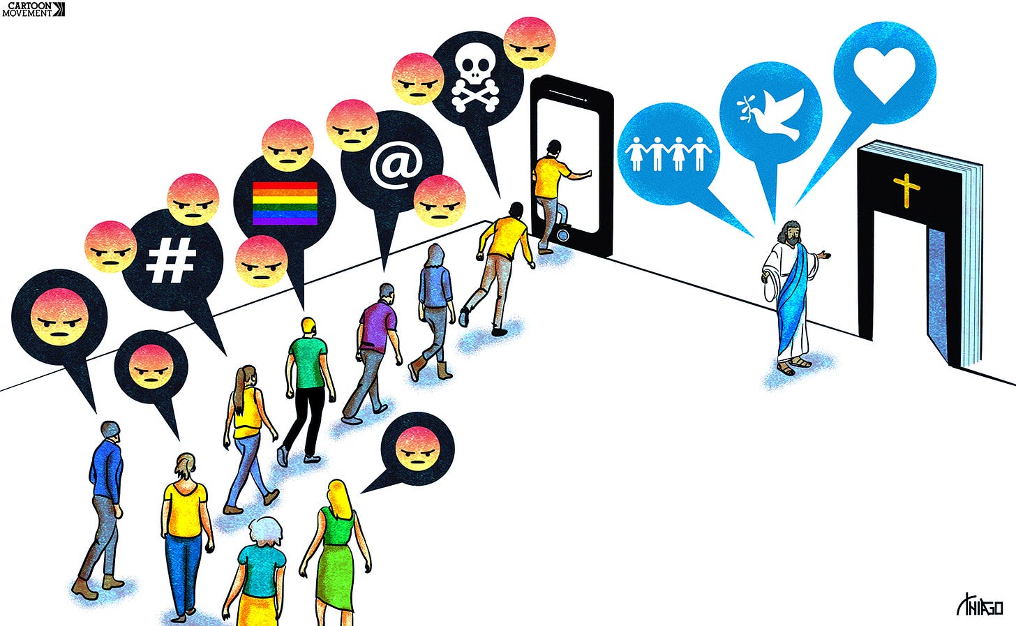 Hate speechToday's editor's choiceJul 05, 20232SharePeople seem to be more interested in being angry, indignant and intolerant than in being accepting and kind these days. Cartoon by Thiago Lucas.More cartoons